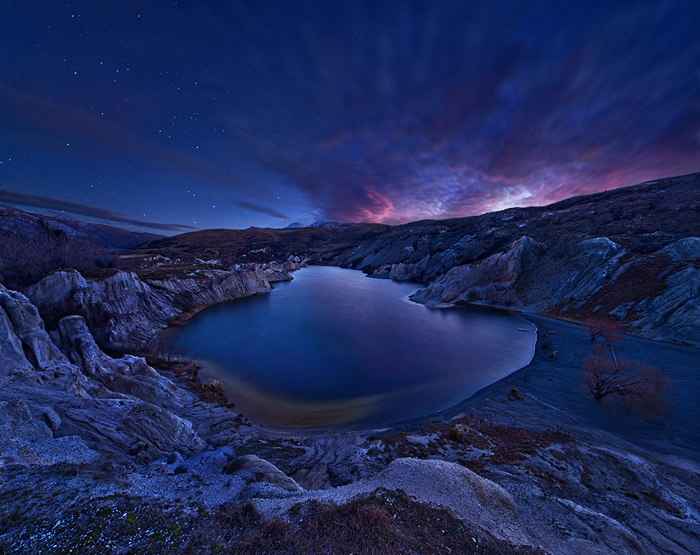 Blue Lake is located in Saint Bathans – a former gold and coal mining town in the Otago highland region of South Island, New Zealand. Because of its remote geographic location, Saint Bathans is not a popular place for tourists and photographers. It is quiet, especially in winter. People sometimes call it a ghost town. I only heard about Saint Bathans after my fourth trip to South Island. The more information I received about this place, the more my curiosity increased. When I planned my winter trip to the South Island in July 2014, I decided to visit Saint Bathans.
