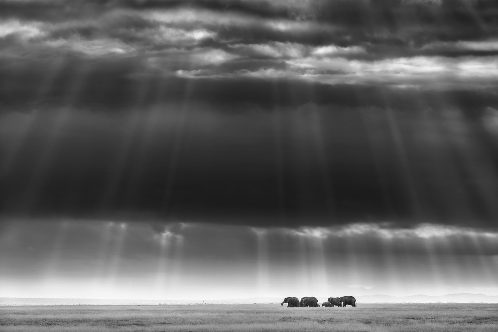 There is no rule of thumb for what kind of scene should turn into a B&W photograph. In general, I find low contrast scenes, overcast cloudy skies, rough surfaces with lots of texture (elephant skin), and animal’s with a grey body colour or black white skin pattern (like zebra, wildebeest, giraffe) are more suitable to turn into a B&W photograph.